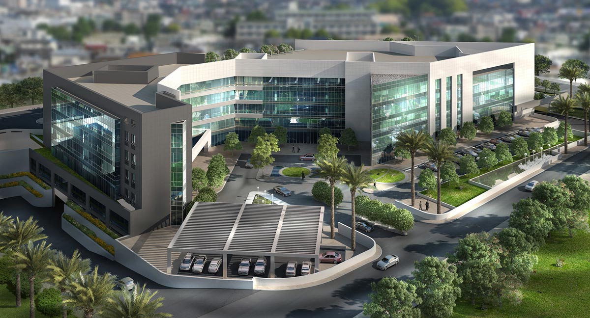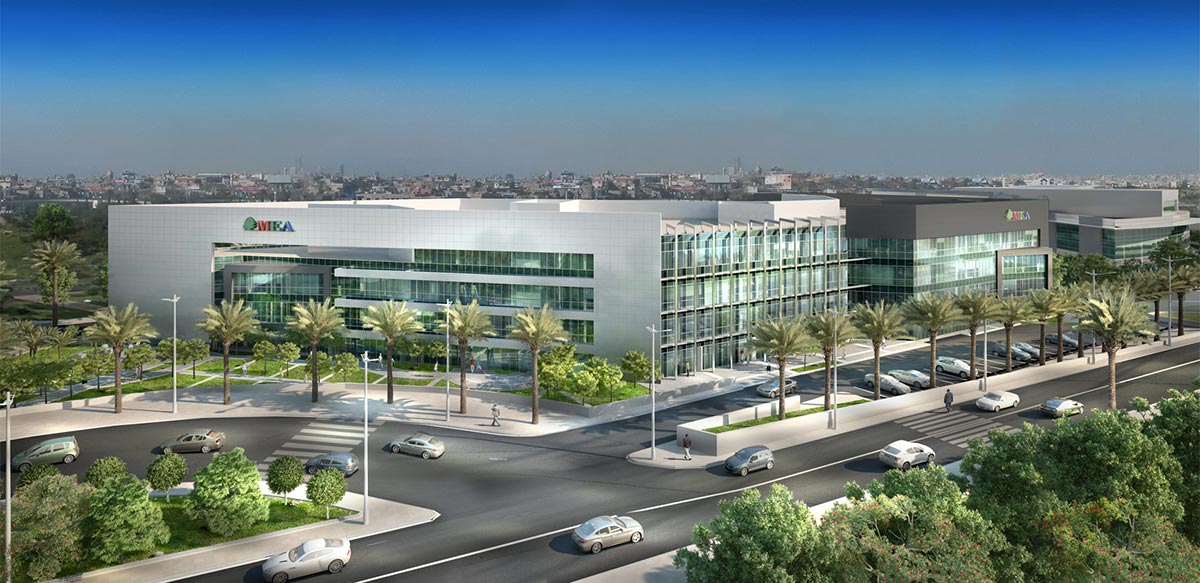 Facade for M.E.A. office complex. The complex was completed at the end of 2018.