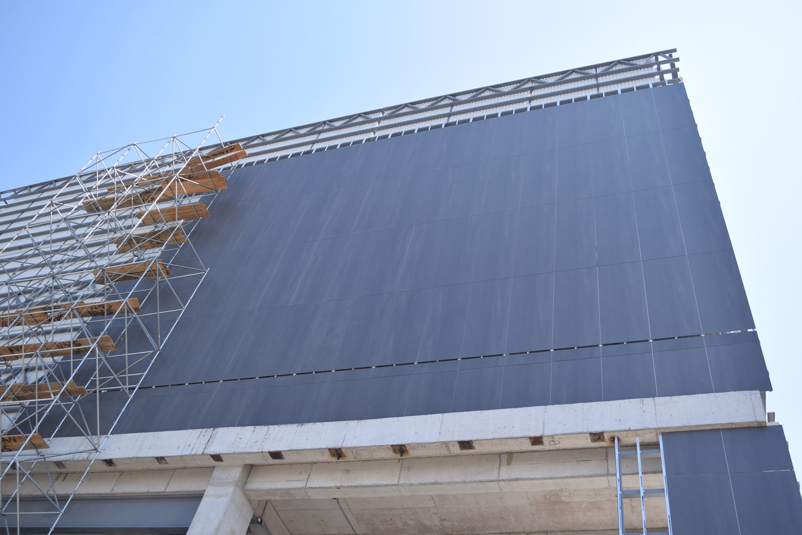 - Exterior cladding made of 6 mm thick Neolith Porcelanica Slim plate